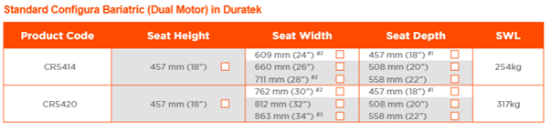 The Configura Bariatric electric riser recliner chair brings Configura technology to bariatric seating. The bariatric chair offers adjustability of size, pressure and postural supports appropriate for a wide range of users. This model of the chair has independent leg-rest & independent backrest motors.